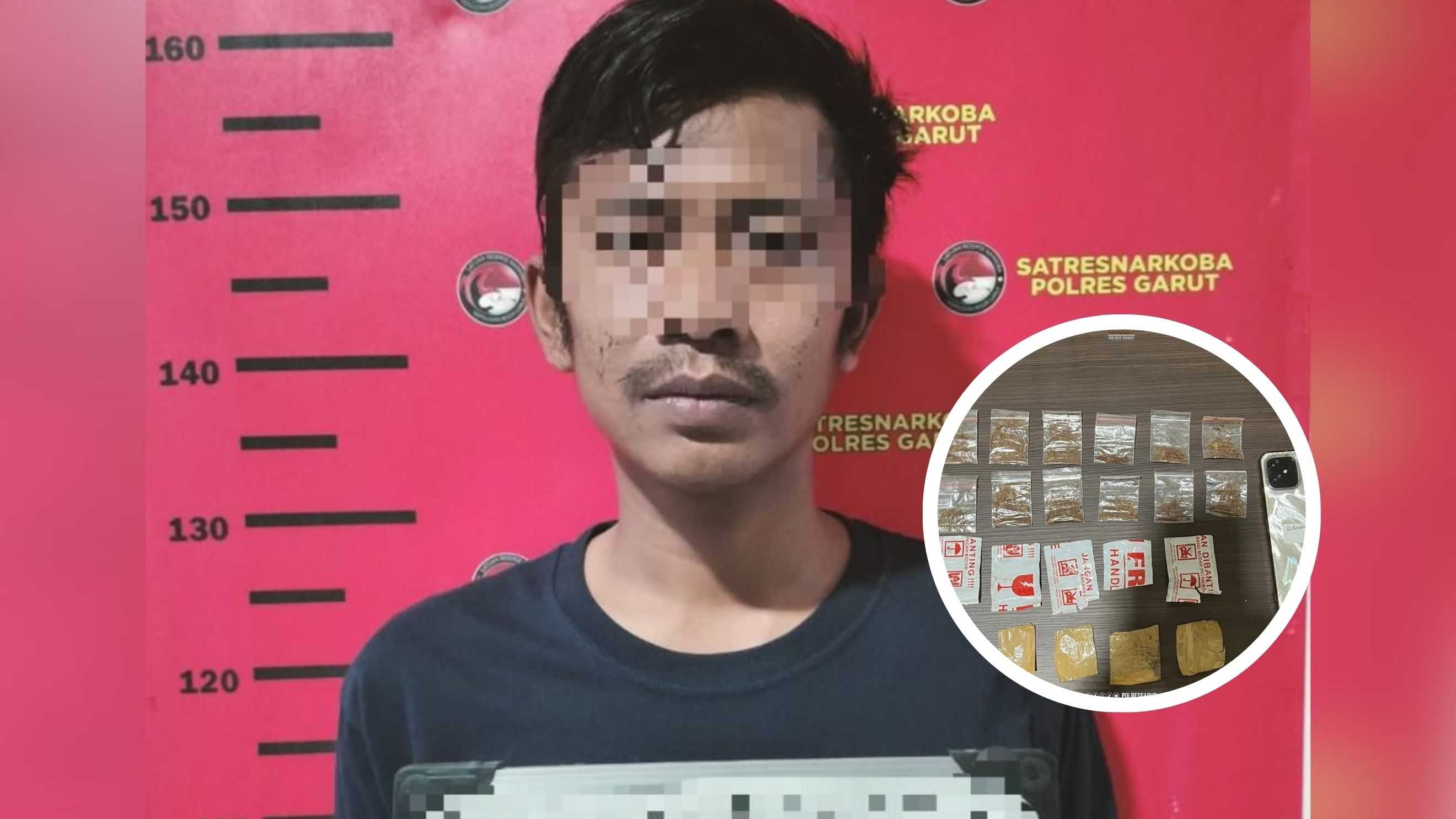 Dalam kasus tembakau sintetis tersebut, Satresnarkoba Polres Garut mengamankan 14 paket diduga narkotika yang dikemas dalam plastik klip dengan dililit lakban. Petugas juga menyita satu unit sepeda motor, satu unit handphone, hingga bukti percakapan melalui aplikasi pesan.