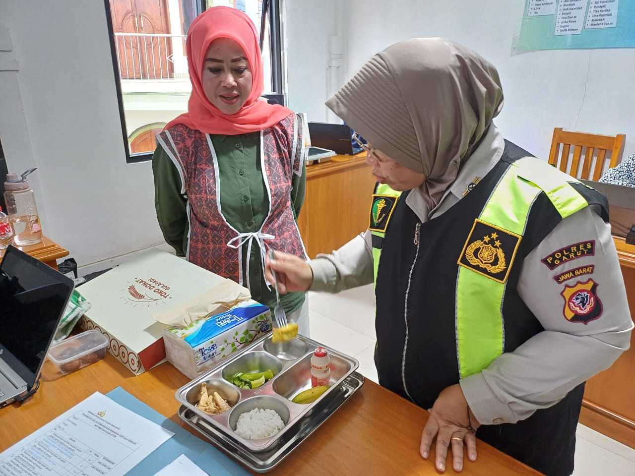 "Ini adalah bagian dari program kesehatan internal kami. Kami bertanggung jawab memastikan setiap proses penyajian makanan di lingkungan Polres Garut dilakukan dengan standar kebersihan dan keamanan yang tinggi," tegas Aceng Ridwan.